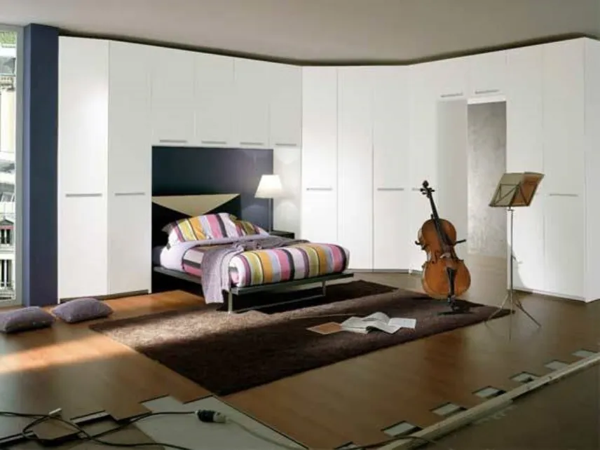 Vi piacerebbe allestire un armadio dietro al letto? E' un'idea attuabile e anche se non ci vuole uno spazio eccessivo, bisogna essere in grado di sfruttare ogni minimo centimetro. Dovete però essere messi al corrente di alcune disposizioni legislative e cioè che se la cabina che volete allestire è formata da pannelli smontabili, non c'è bisogno di alcun tipo di permesso al contrario invece, bisogna denunciare al comune della cittadina di appartenenza, l'inizio di un lavoro che riguarda un nuovo vano se la cabina viene realizzata in muratura o anche in cartongesso. Sarà poi opera del comune, trasferire questi dati di cambiamento al catasto. Per un armadio da realizzare dietro al vostro letto, bastano circa 100 centimetri e poi sarebbe consigliabile far effettuare una doppia apertura che possa consentire una perfetta visione. Attenzione alle porte che farete installare perchè alcune occupano molto spazio ed allora specialmente se i metri a disposizione sono minimi, dovete valutare con sapienza quali porte far inserire. Quella che ingombra maggiormente è la porta battente che prende buona parte dello spazio al contrario delle ante a libro che di spazio ne occupano la metà. Le porte più pratiche e meno invadenti sono quelle scorrevoli che in pratica hanno un ingombo pressocchè nullo visto che quando si aprono, non fanno altro che sovrapporsi ad esse stesse. Se avete spazio e desiderate un design esteticamente più favorevole, optate per le porte complanari che quando si chiudono hanno la chiusura che combacia in maniera perfetta. In foto: Armadio Spaziante di Faer Ambienti