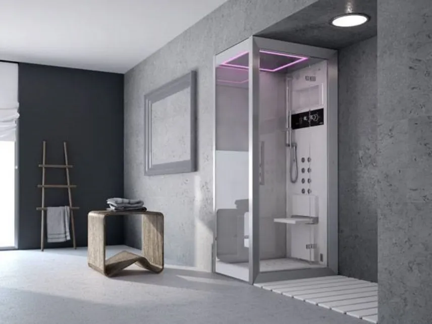Esiste la possibilità, per i modelli non dotati in partenza dalla casa produttrice, di inserire comode sedute per un relax ancora maggiore. Elementi plasmati su misura prendono forma dal legno, dalle tinte chiare e dalla grande comodità per l’utilizzatore. Entra in gioco per le versioni più fornite di accessori la possibilità di inserire un sistema audio che sarà comandato da un pannello disposto sul fusto verticale della colonna idromassaggio. Momenti speciali in cui abbandonarsi completamente all’effetto pioggia rilassante e alle luci cromo terapiche, ai massaggi tonificanti, comodamente seduti su ergonomiche strutture ascoltando la nostra musica preferita e abbandonando fuori tutto il resto.
