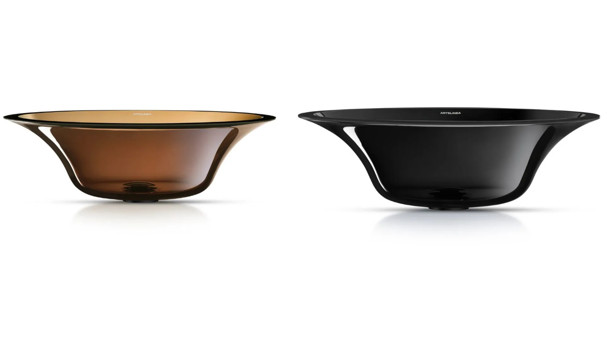 Konca di Artelinea ci propone dei lavamani in cristallo colorato in pasta lucido con spessore 12 mm. I colori disponibili sono Bronzo, Ambra, Fumé e Blu.