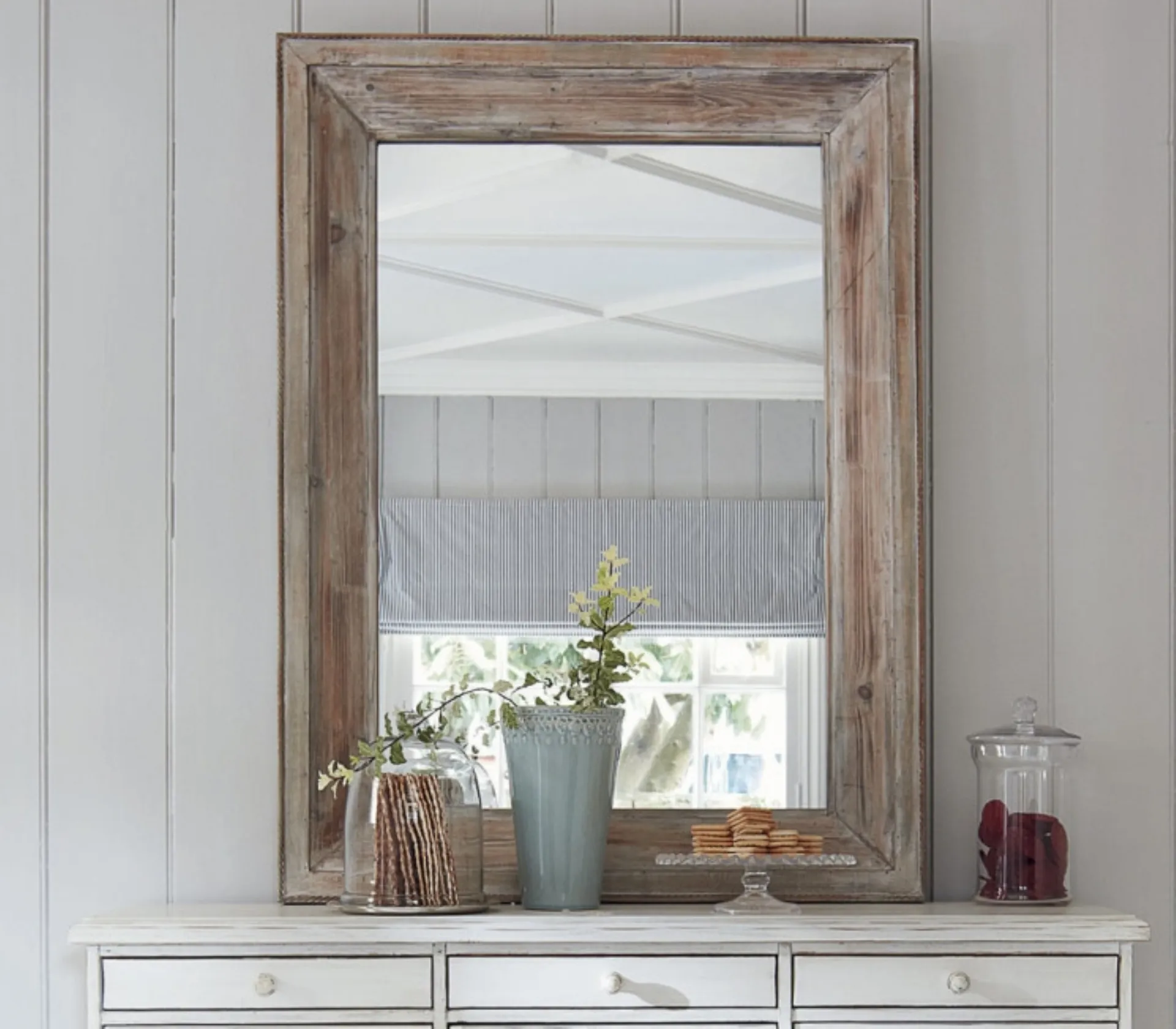 Lo stile shabby chic mantiene saldo il suo posto fra le principali tendenze in fatto di arredamento. “Shabby” vuol dire trasandato, il significato della parola “chic” è noto; siamo quindi davanti a un ossimoro che si traduce in un’estetica originale, dove l’approssimazione, la trasandatezza e la casualità degli accostamenti sono soltanto apparenti. In realtà è uno stile curato in ogni minimo dettaglio. E grande importanza, in un ambiente shabby, hanno tutti i complementi. Compresi gli specchi, che sono lunghi, da terra, magari accostati a una poltrona, oppure appesi in corrispondenza di un romantico e nostalgico comò. Volutamente consumati, discreti eppure sempre in grado di catalizzare l'attenzione. Molto interessanti le proposte di Maison du Monde relative proprio agli specchi shabby chic: grande impatto, buona qualità, prezzi onesti. In foto lo specchio rettangolare Perrine, caratterizzato da una cornice in legno grezzo leggermente sbiancato. Dimensioni: altezza 112 cm, larghezza 83 cm, profondità 6 cm. Prezzo: 99,99 euro.