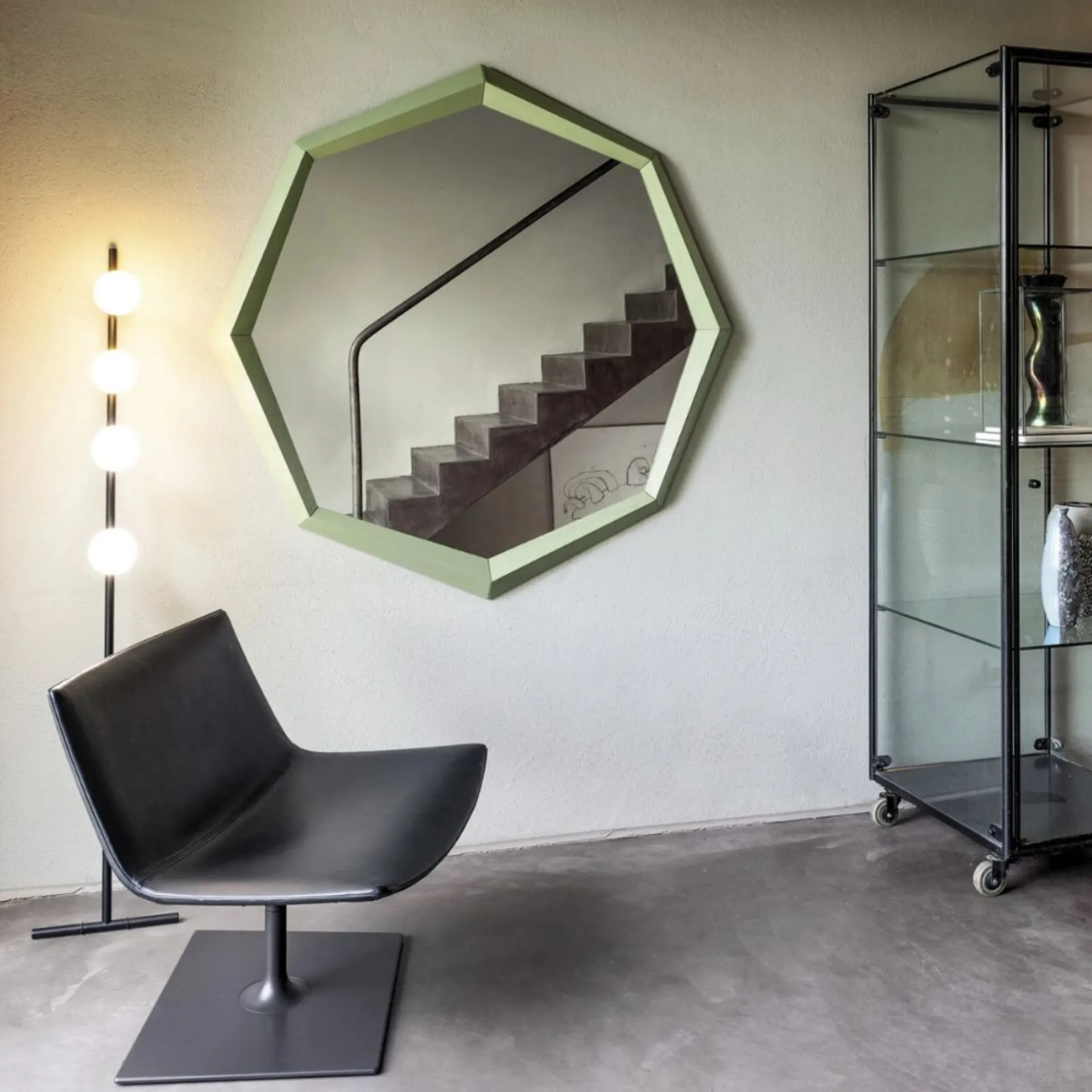 Lo specchio della collezione Colette di Calligaris alterna il cristallo piano al curvato per dare vita a riflessi dinamici e sofisticati.