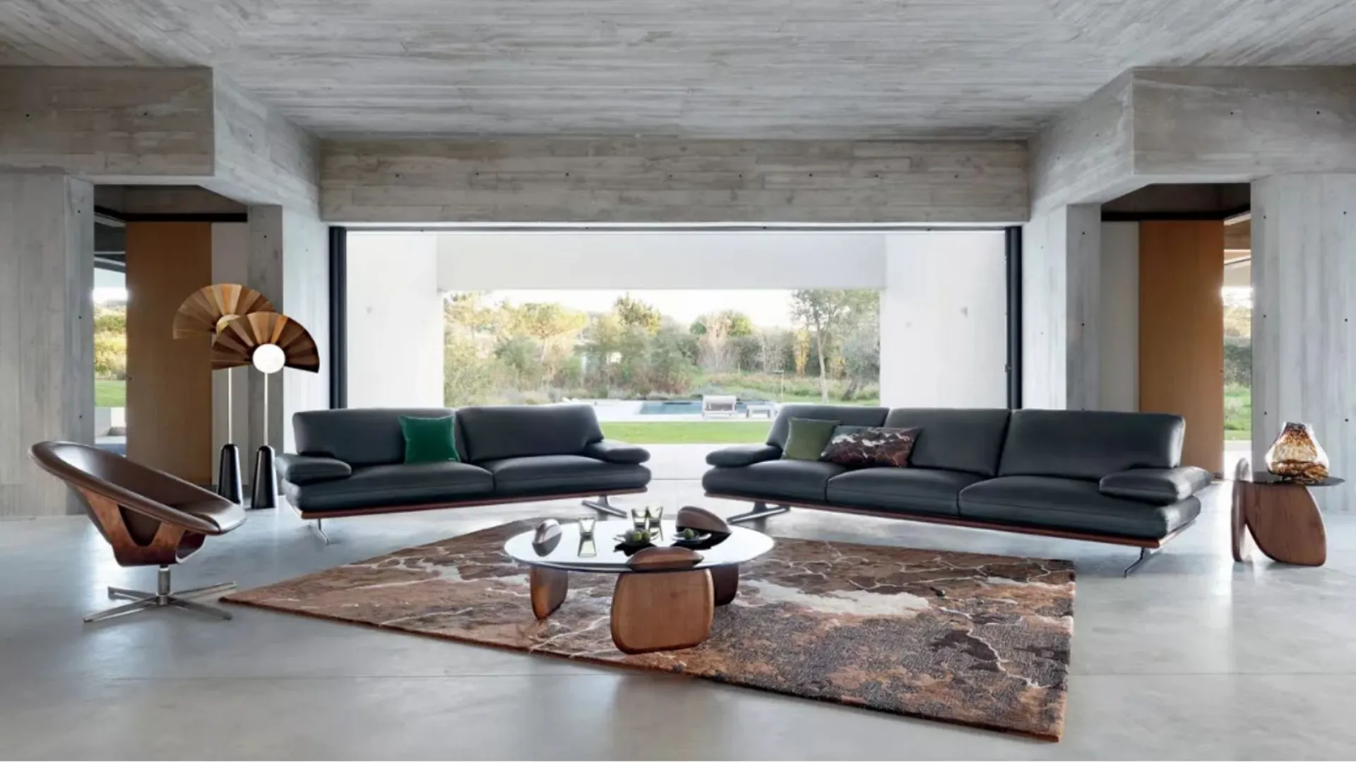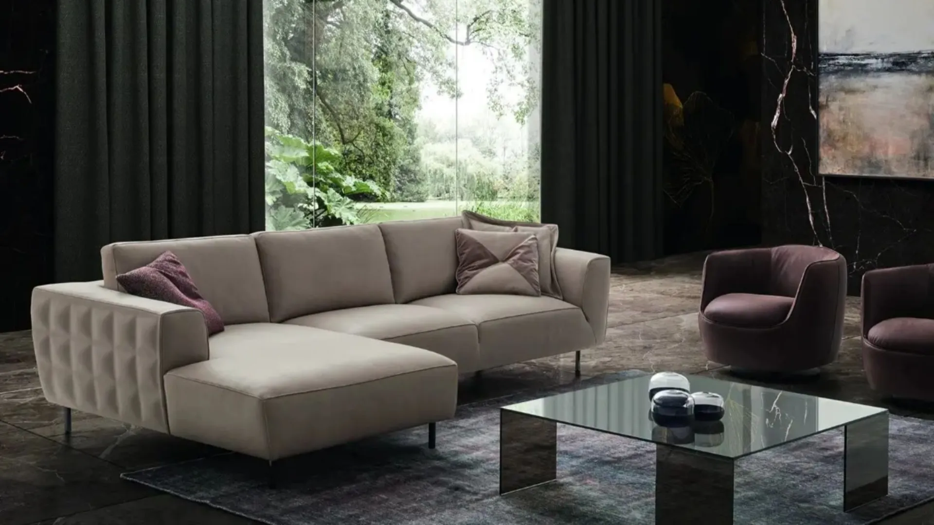 - Il divano che poggia direttamente a terra è la soluzione perfetta per chi desidera definire lo spazio con maggiore autorità volumetrica.