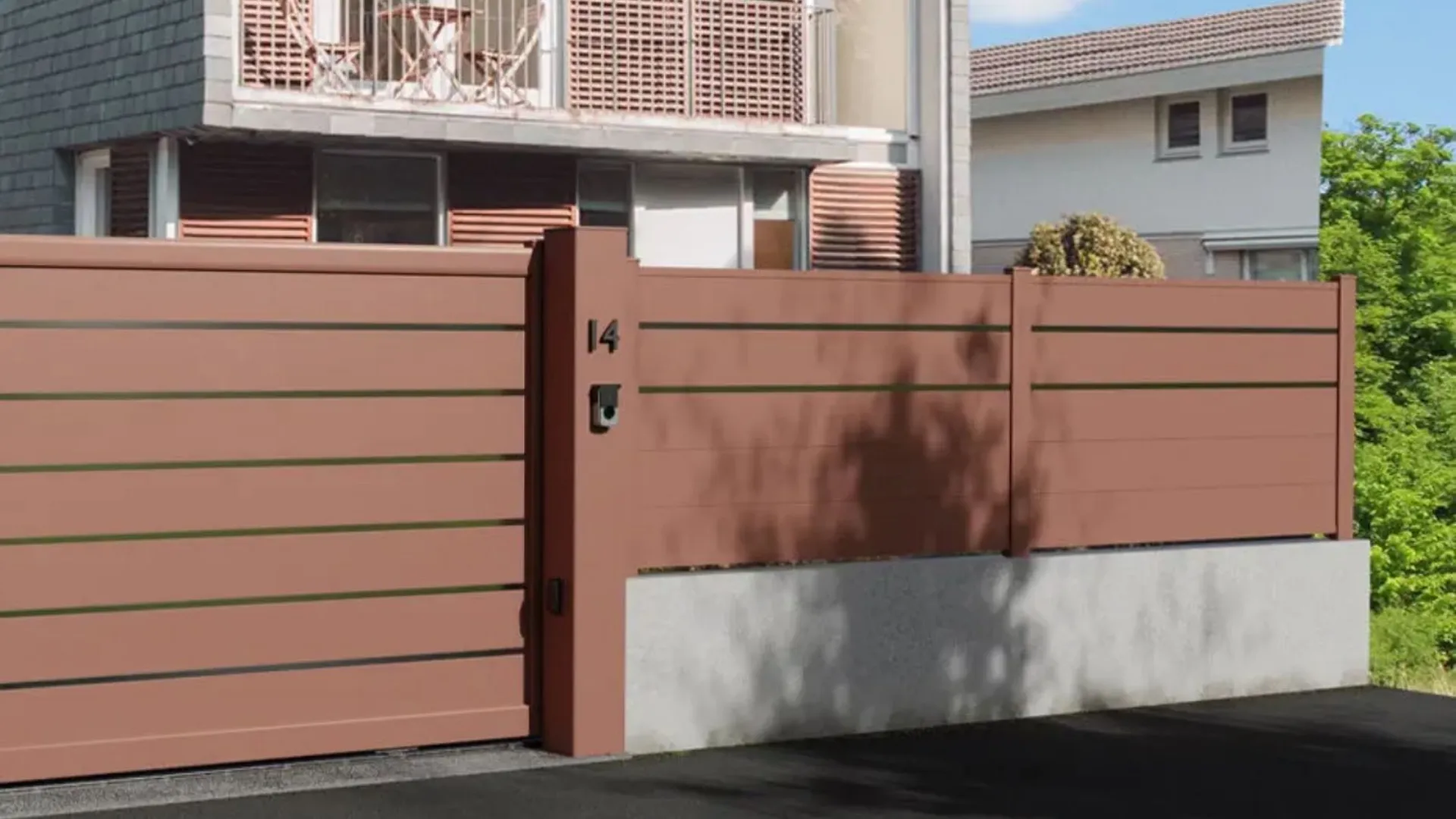 La recinzione a lamelle in alluminio di Sepalumic offre la massima sicurezza e resiste al vento. È disponibile in grigio, marrone o rosso.