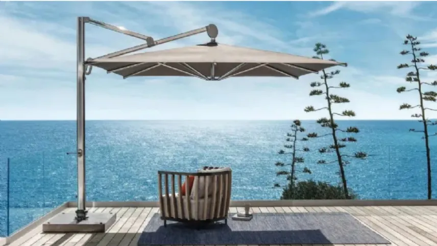 - Alcuni modelli a braccio laterale sono dotati di un meccanismo che permette alla base di ruotare, offrendo così una protezione completa dal sole in qualsiasi posizione ed angolazione desiderata.