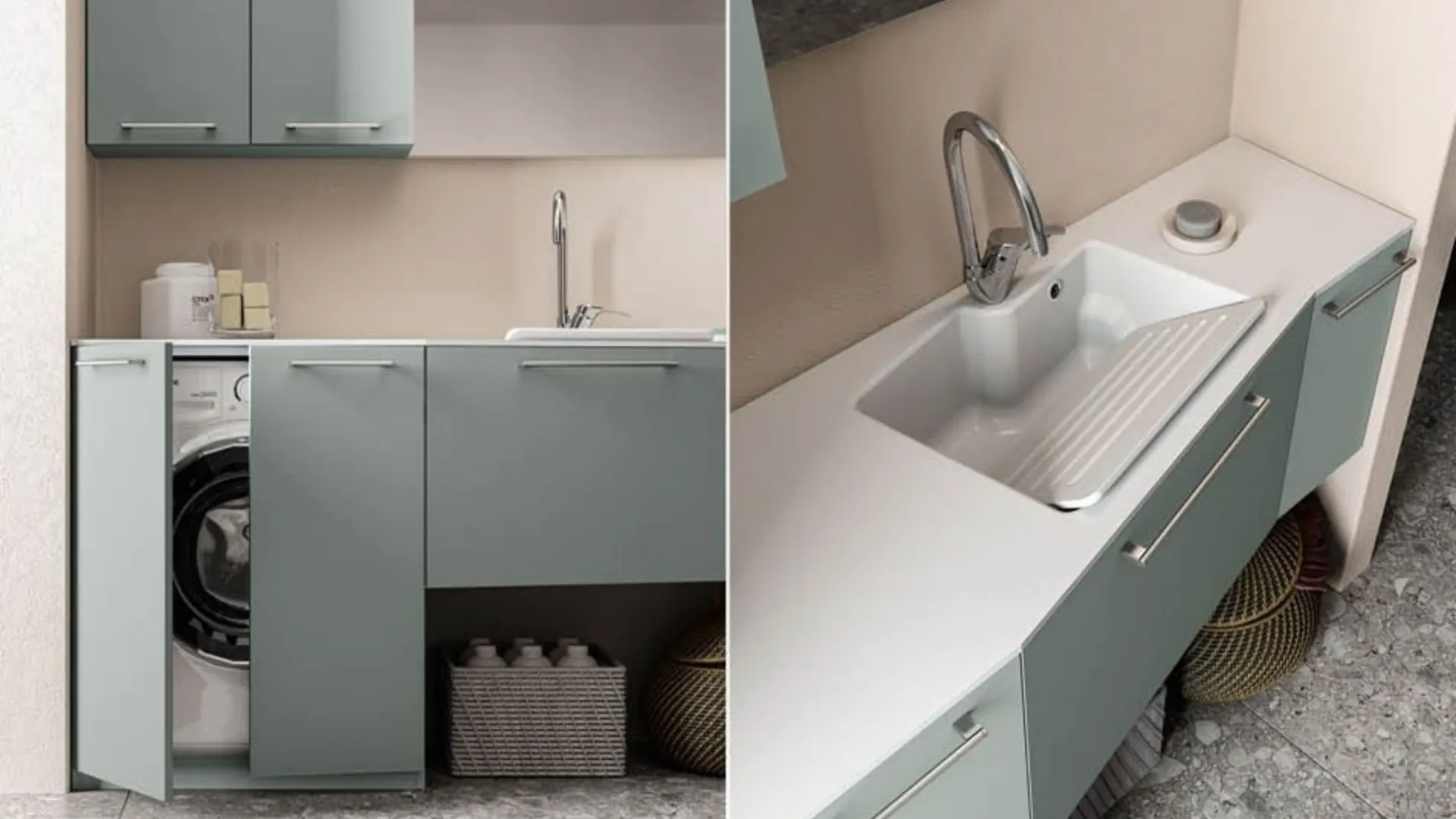 Questa soluzione consente di mantenere l'ambiente ordinato, nascondendo sia la lavatrice che l'asciugatrice dietro le ante e riducendo così l'aspetto ingombrante di questi apparecchi.