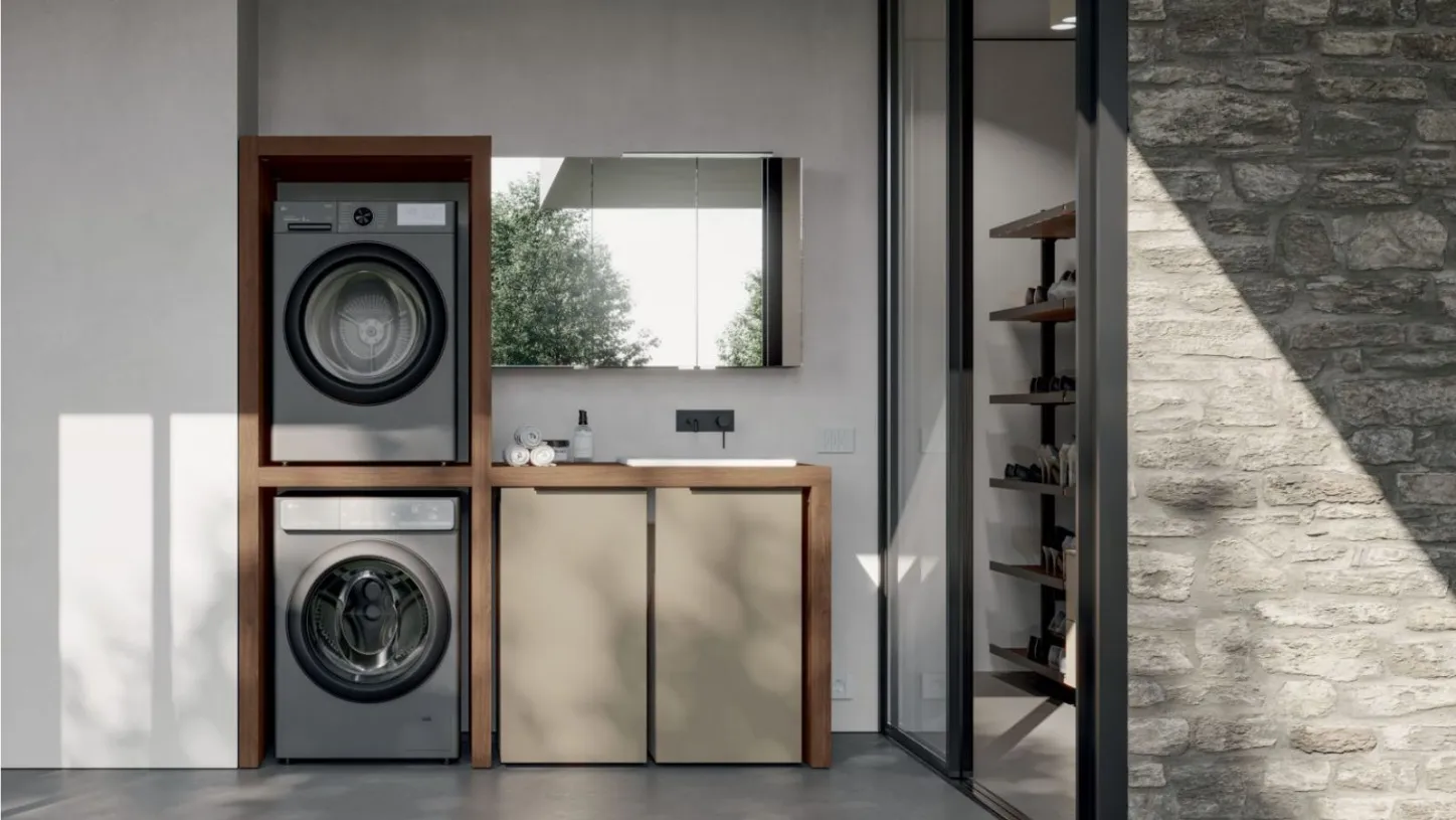 Ideagroup presenta la collezione Spazio Time, una soluzione dove gli elettrodomestici sono incassati in mobili a colonna per lavatrice e asciugatrice, per adattarsi alle nostre esigenze di spazio e funzionalità, seguendo le tendenze moderne dell'abitare.