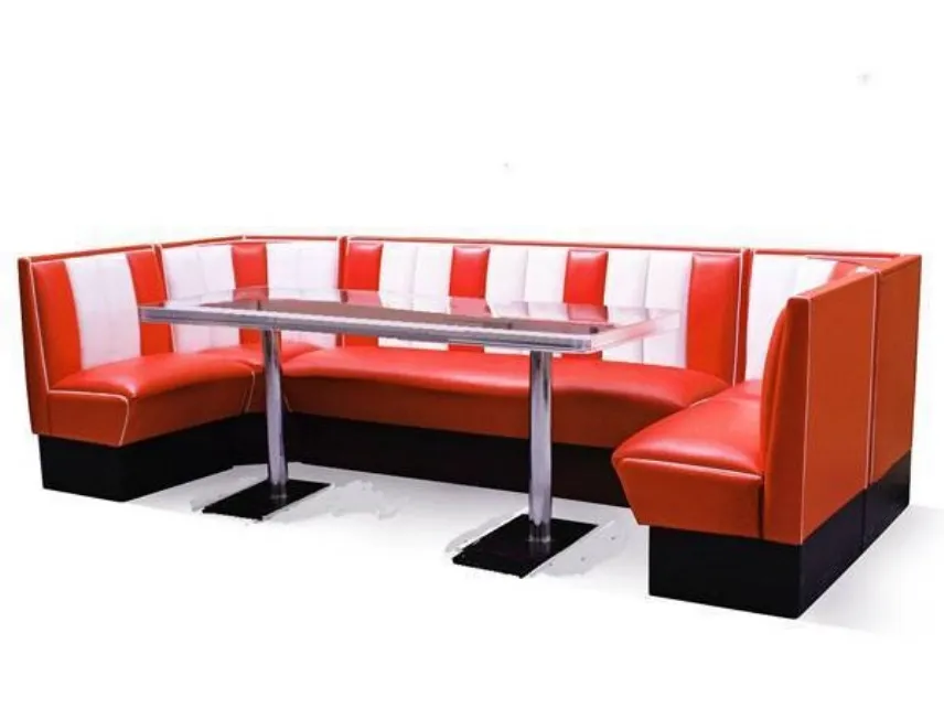 Lo stile dei mobili anni 50 è caratterizzato da elementi e forme caratteristiche molto semplici da riconoscere poiché visti e vissuti in film di quell’epoca, con svariati colori dai toni vivaci, blu, turchese, toni pastello come il verde, bianco, avorio, rosa. Per la mobilia si osa anche con il rosso lucido, l’arancio, il verde combinati con bianco crema o panna. Sono frequenti gli inserti in metallo dalle gambe dei tavoli a quelle delle sedie, maniglie di ante e cassettiere. Massivo anche l’impiego in questi anni del linoleum e del metallo verniciato.