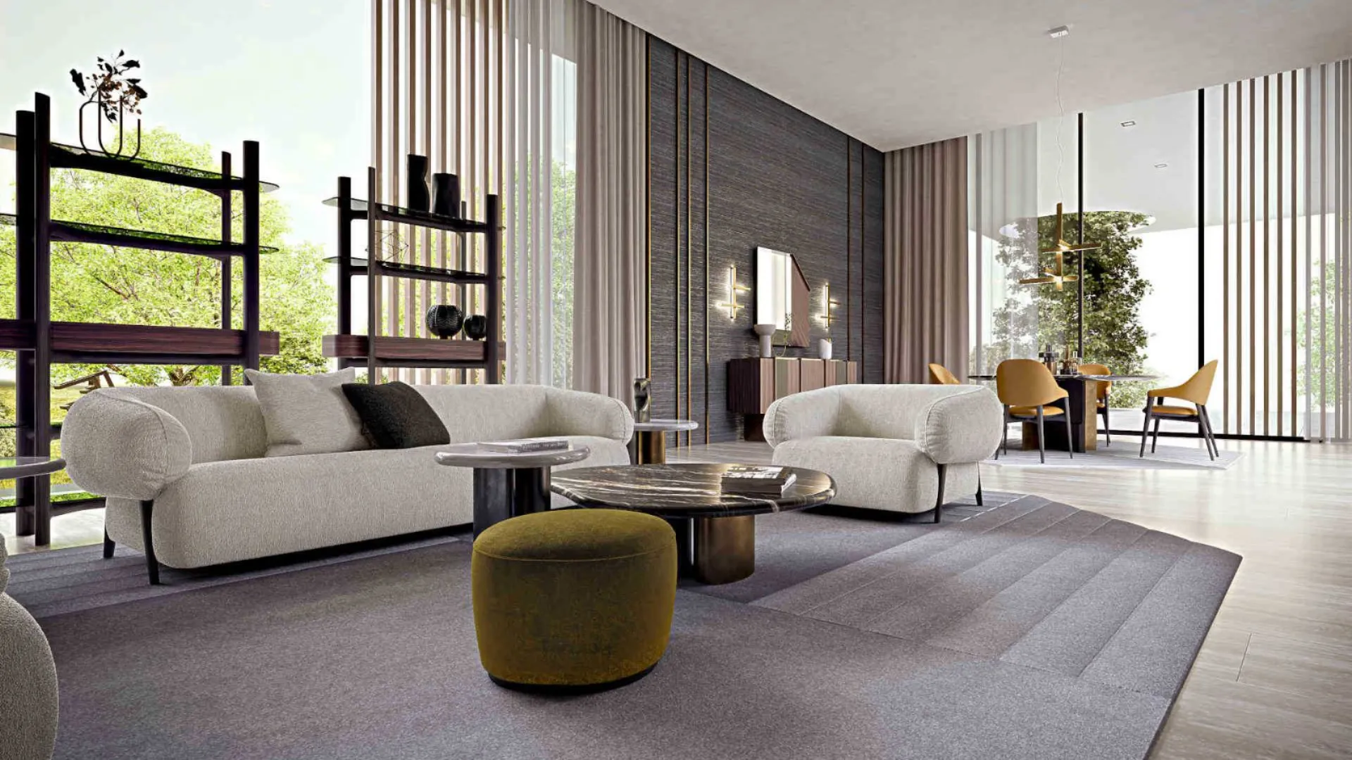 Se stai pensando a come abbinare divano e poltrona ecco Carol di Zanaboni, un set di sedute realizzabile con tessuto bouclè.
