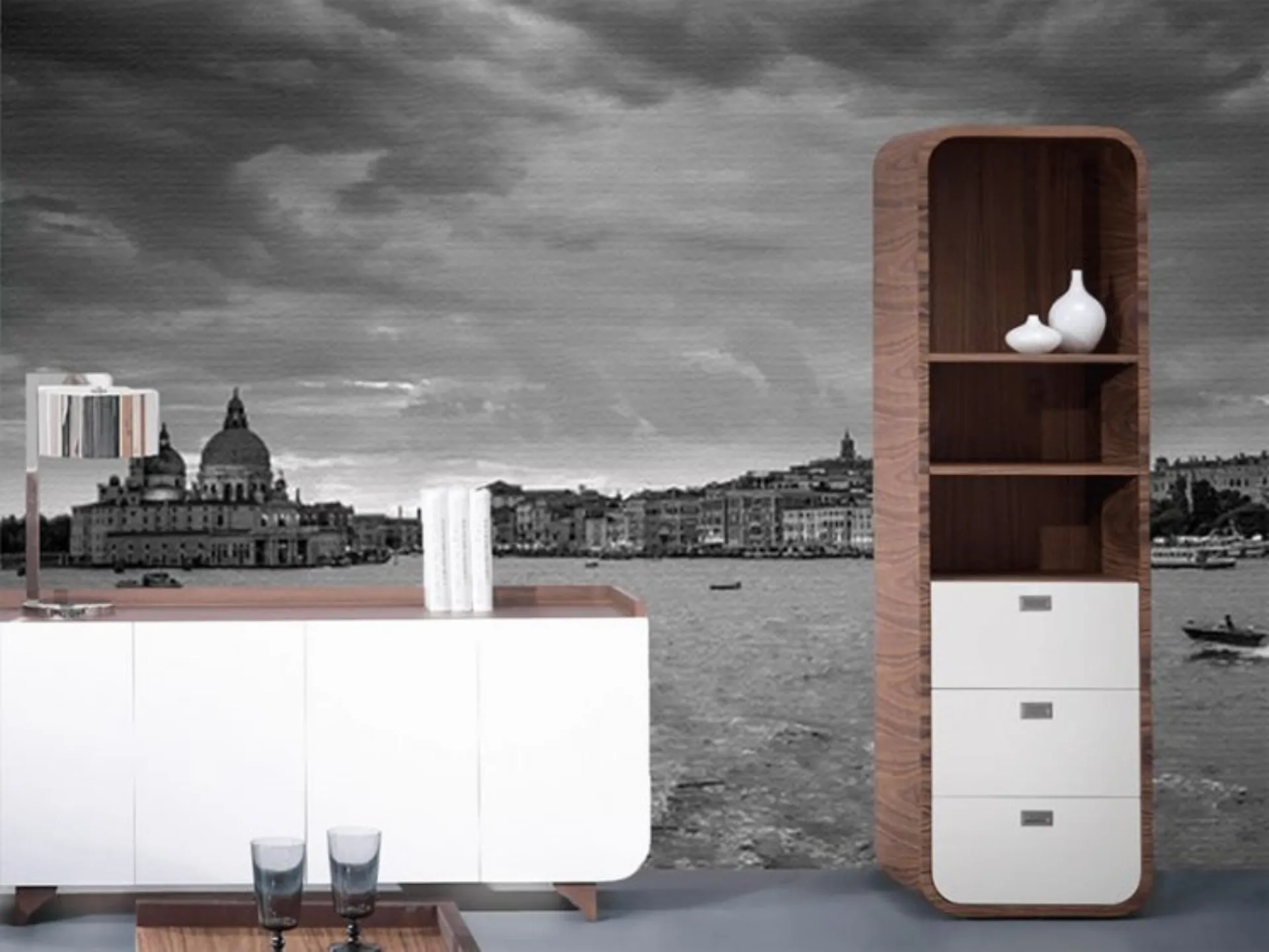 Fra le carte da parati panoramiche, molto glamour risultano quelle raffiguranti città famose, sia italiane che straniere. New York, Parigi, Londra, ma anche Roma, Venezia, Firenze sono parecchio gettonate e riprodotte in un modo che cattura subito l’attenzione e caratterizza in modo netto l’ambiente in cui vengono collocate. Si sceglie fra immagini realistiche al 100 per cento, riprese dall’alto oppure angolari che in parte alterano le proporzioni oppure stampe che si allontanano un po’, e volutamente, dalla realtà. Per creare effetti ancora più originali. Da qualche tempo c’è la tendenza delle carte in bianco e nero, che introducono nella stanza un sapore un po’ retrò; sono davvero belle, ma non molto adatte nel caso in cui gli arredi presentino tonalità scure, perché si rischia di ottenere un risultato all’insegna della cupezza e della poca luminosità. In foto la carta da parati Venezia di Mat&Mat. Tutte le carte proposte da questa azienda sono realizzate in TNT (Tessuto non Tessuto) e dotate di una sottile lamina in PVC che rende la superficie più uniforme e ne prolungano la durata. Sono inoltre lavabili, ignifughe e antigraffio.