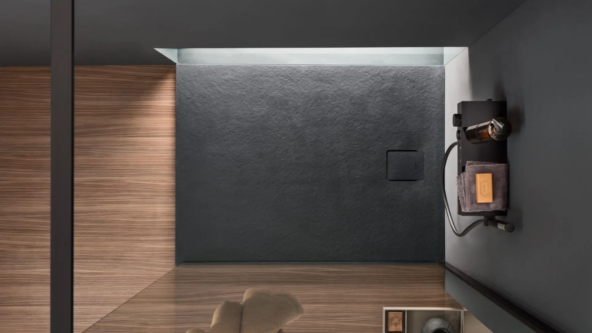 Forma Mose di Hafro, del Gruppo Geromin, arricchisce la zona dedicata al benessere con piatti doccia in resina, rivestiti da uno smalto tecnico con effetto pietra opaco. Il copripiletta è facilmente ispezionabile e viene fornito nella medesima texture.